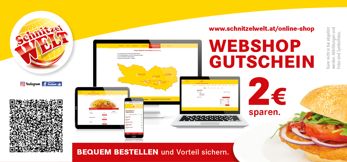 1. Auf die gewünschte Schnitzelwelt-Filiale klicken. 2. Ihre Lieblingsspeise(n) und ihr(e) Getränk(e) bestellen. 3. In der ausgewählten Filiale abholen. 4. Mitnehmen und genießen – Mahlzeit.